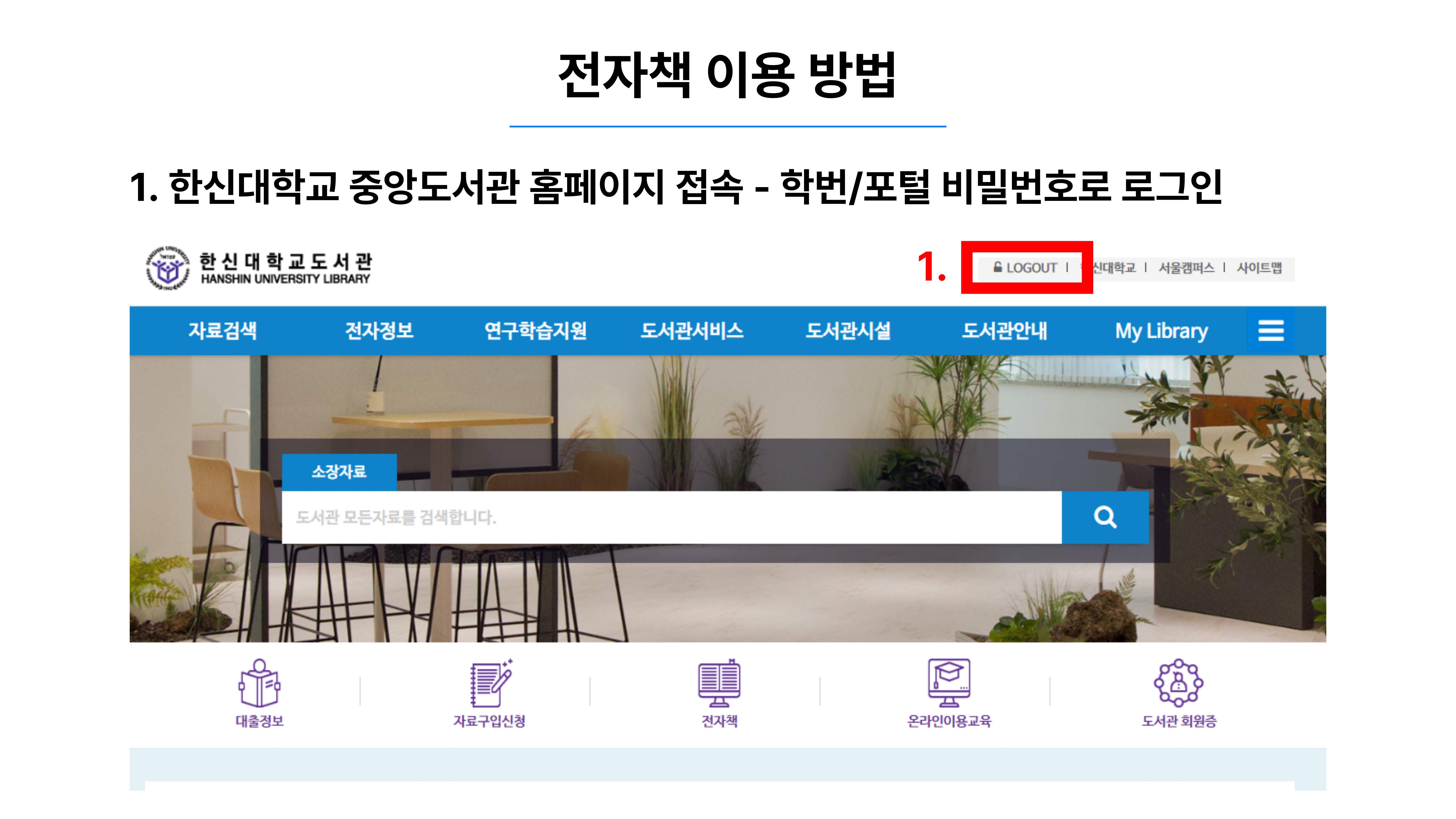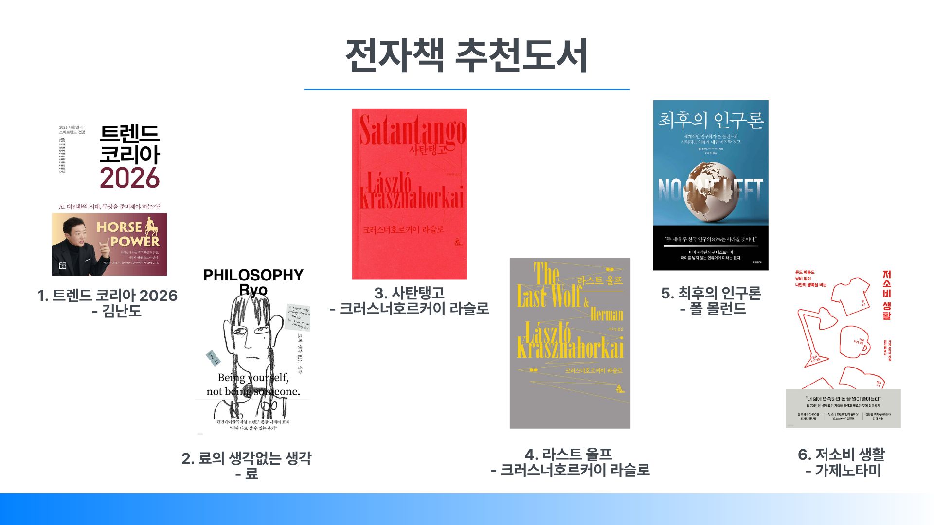 [중앙도서관] 전자책 추천 도서 및 이용 방법 안내