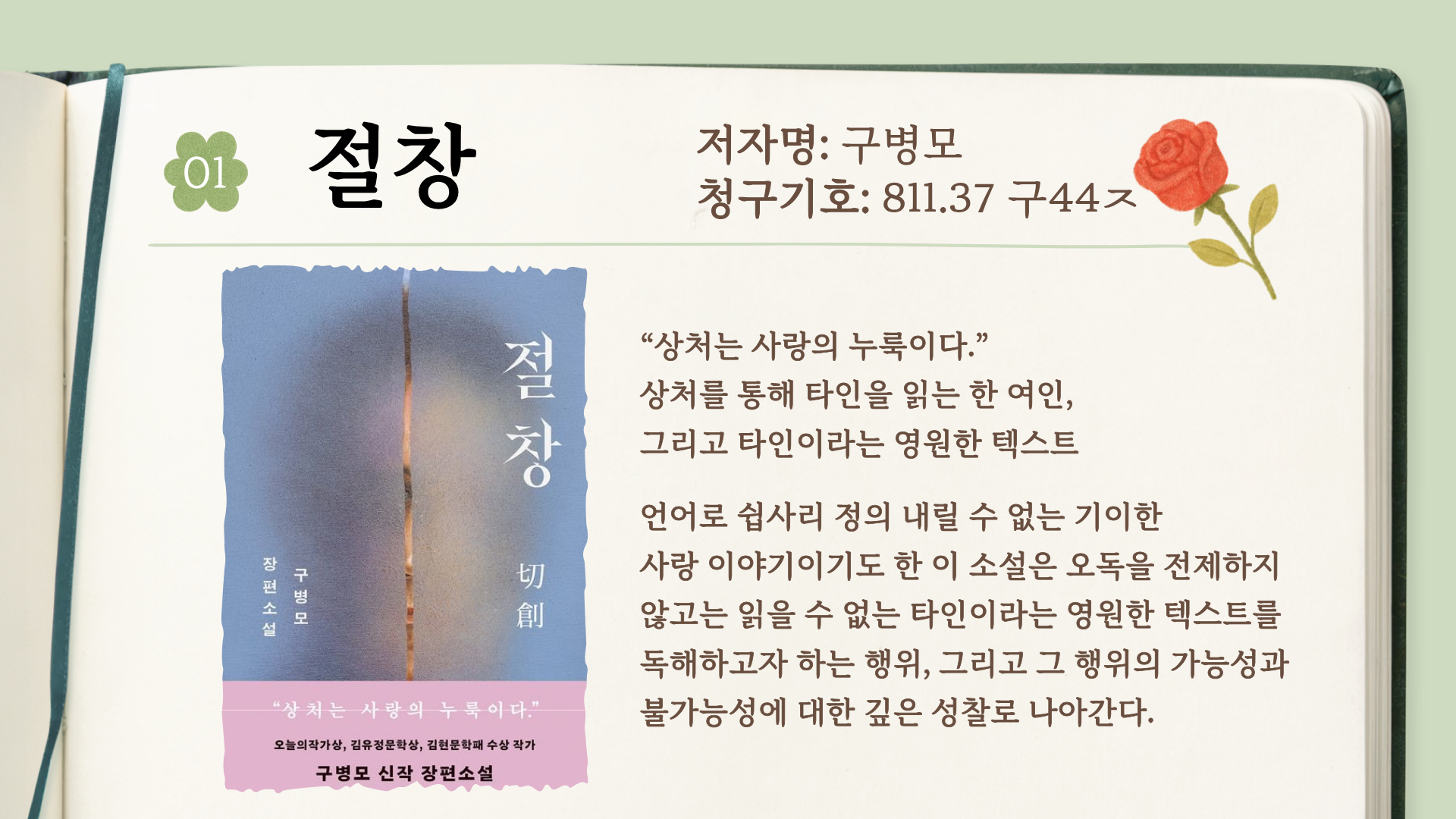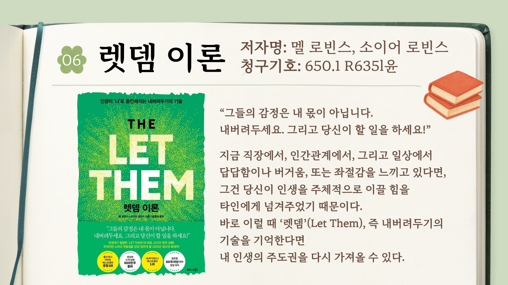 ✔️ 신착도서 위치 : 중앙도서관 2층 자료실 북큐레이션 전시 테이블 뒷편 서가 (신착코너)