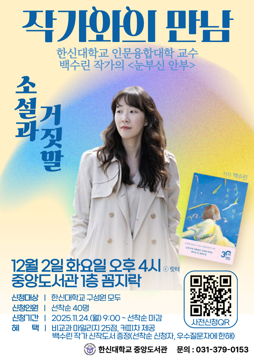 2025학년도 2학기 작가와의 만남(백수린 작가편) 사전 신청 안내드립니다.
